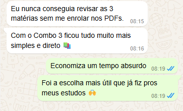 Com o Combo 3 Matérias, você estuda direto do celular ou notebook — no ônibus, no metrô, na fila do banco ou até na pausa do trabalho.